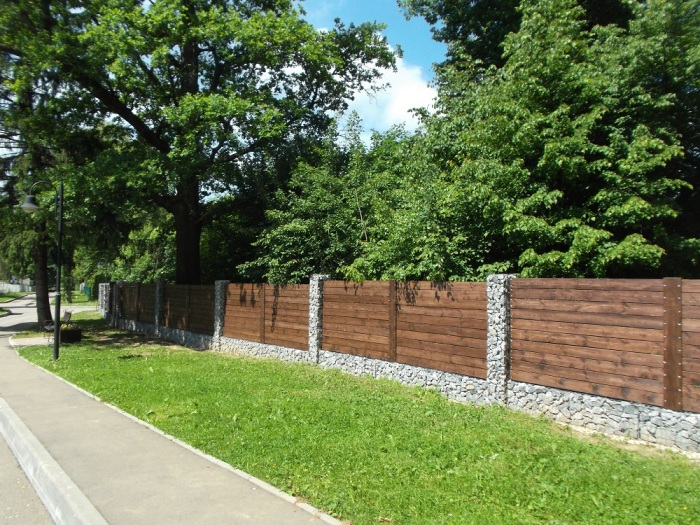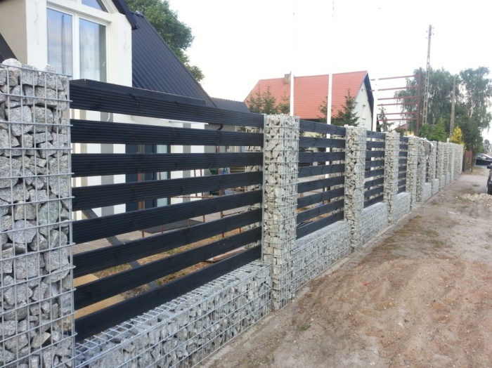 Габионы нашли широкое применении в строительстве заборов и ограждений для приусадебных участков.