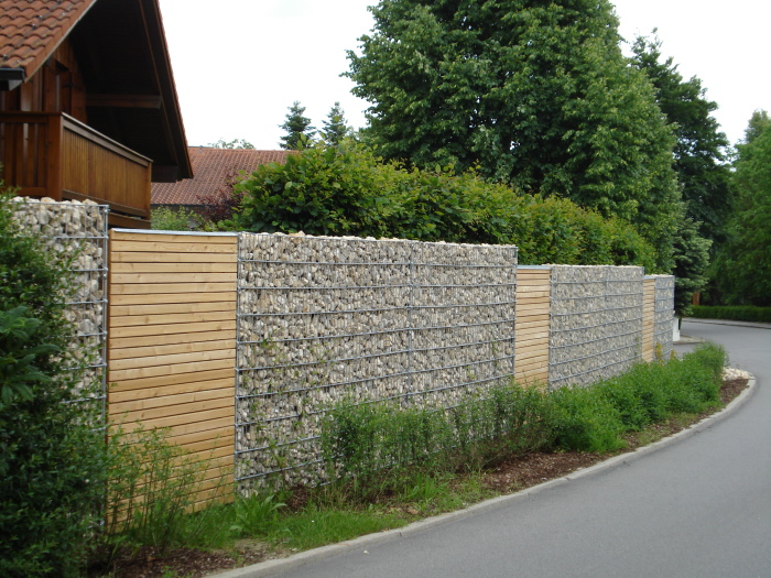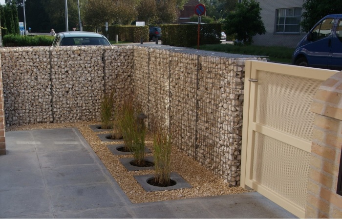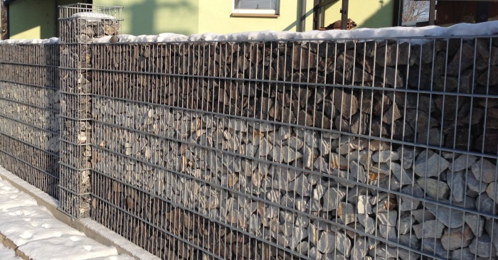 Использование габионов для бюджетного оформления дачных заборов и стен.